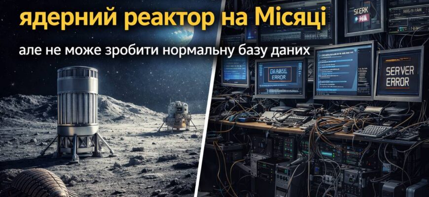 NASA готується побудувати на Місяці ядерний реактор, який виробляє 100 кіловат електроенергії цілодобово — достатньо для живлення близько 80 американських будинків — і при цьому, за словами галузевих критиків, не має єдиної бази даних, в якій усі підрядники бачили б актуальний стан процедур обслуговування систем життєзабезпечення. Це як побудувати найскладнішу ядерну електростанцію в Сонячній системі і вести всю її документацію у спільній папці Google Drive, де кожен підрядник зберігає власну копію у власному форматі.