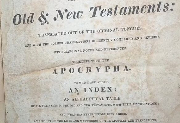 У центрі уваги — Біблія 1818 року, що містить Старий і Новий Заповіт разом із Апокрифами — давніми текстами, чия канонічність досі викликає дискусії.