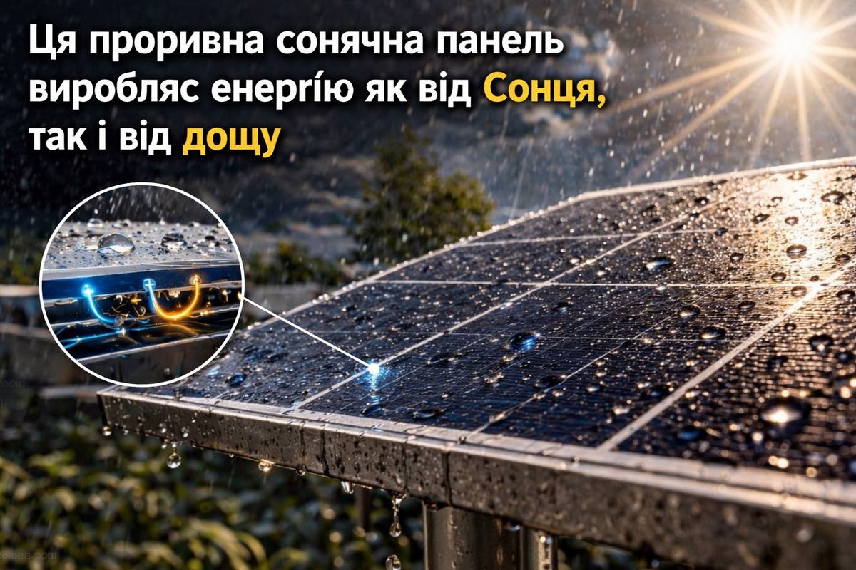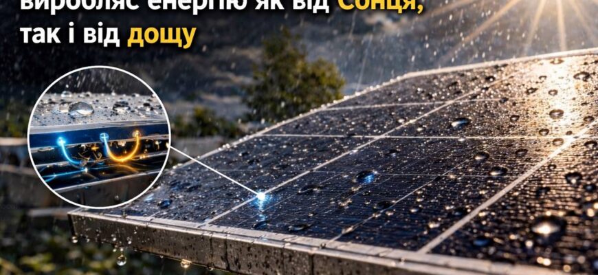 Дощ завжди був ворогом сонячних панелей — хмари перекривають світло, а виробництво електроенергії падає майже до нуля. Але команда дослідників із Севільї вирішила перетворити цього ворога на союзника. У новому дослідженні, про яке повідомляє EurekAlert, іспанські вчені розробили гібридний пристрій, який одночасно виробляє електрику від сонячного світла і від падіння краплин дощу — причому одна крапля здатна генерувати до 110 вольт.