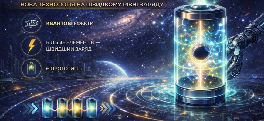 - Квантова батарея від китайсько-іспанської команди, про яку у лютому 2026 повідомив New Scientist, використовує 12 кубітів і заряджається вдвічі швидше за класичний аналог при тій самій затраті енергії.