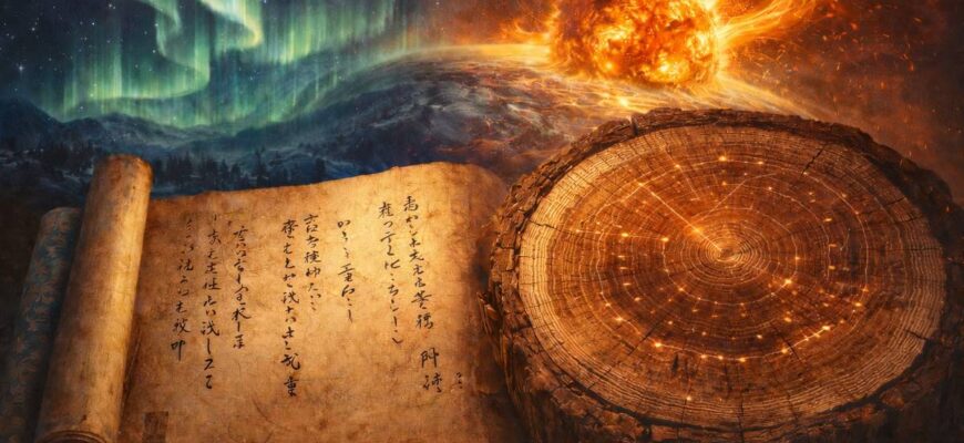 Річне кільце дерева, яке росло у Японії у 1201 році, виявилося точнішим «детектором» сонячного шторму, ніж будь-який прилад тієї епохи. Деревина зберегла радіоактивний слід, невидимий оком, — і пролежала в ґрунті 800 років, чекаючи, поки людство навчиться її «читати». Ліс виявився найстарішою сонячною обсерваторією на Землі.