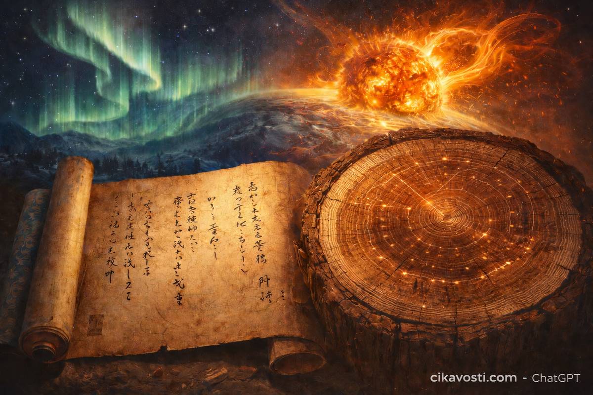 У тринадцятому столітті японський поет записав у щоденнику дивне: «червоні вогні в нічному небі над Кіото». Вісімсот років потому вчені перетворили цей рядок на науковий доказ. У новому дослідженні, про яке повідомляють науковці з Окінавського інституту науки та технологій (OIST), середньовічні літописи та кільця поховених дерев дозволили реконструювати потужний сонячний протонний спалах зими 1200–1201 рр. н.е. Це відкриття змінює уявлення про те, наскільки непередбачуваним буває наше Сонце — і яку загрозу воно несе для сучасних космічних місій.