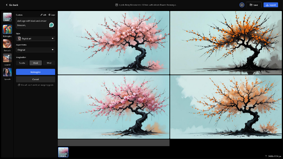 - Редагування та покращення: Видалення об’єктів, upscale (збільшення роздільності), inpainting (заповнення прогалин). Популярно для ретуші селфі чи відновлення старих фото.