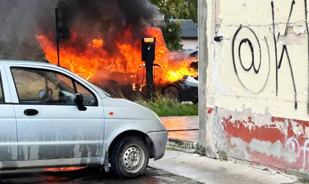 ОНОВЛЕНО: За попередніми даними, вогонь спалахнув у моторному відсіку автомобіля, коли власник під’єднав транспорт до зарядної станції. Полум’я швидко помітили очевидці, які викликали рятувальників.