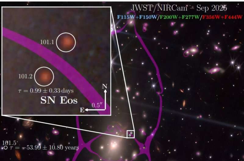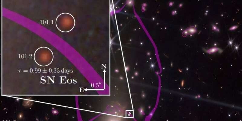 Міжнародна група під керівництвом Девіда А. Коултера повідомила про відкриття наднової типу II, названої SN Eos. «Наднова» — це катастрофічний вибух масивної зорі, який суттєво впливає на хімічну еволюцію галактик. Подію зафіксували завдяки гравітаційному лінзуванню, що підсилило світло об’єкта. Це дозволило спостерігати явище, яке інакше залишилося б непомітним.
