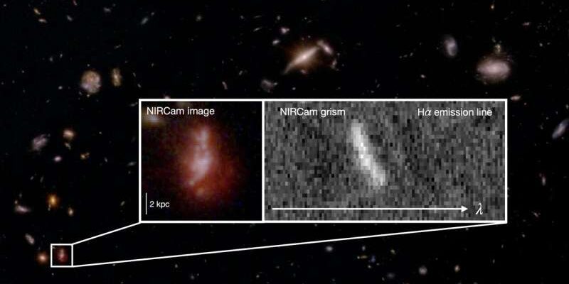 Дослідники з Кембриджського університету проаналізували понад 250 молодих галактик, які існували в період між 800 мільйонами і 1,5 мільярда років після Великого вибуху. Завдяки спектроскопії іонізованого водню за допомогою рідко використовуваного “grism mode” інструмента NIRCam, вдалося вивчити динаміку руху газу в кожній галактиці. «Ми не просто побачили декілька вражаючих винятків — уперше ми досліджуємо всю популяцію одразу», — пояснила Лола Данхейв із Інституту космології Кавлі.