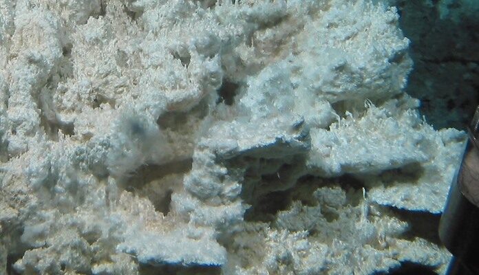 Струмені бактерій, що живуть на кальцитовому жерлі в Загубленому місті. (Університет Вашингтона/CC BY 3.0).