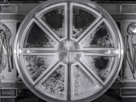 Вчені, які вивчають астероїд Бенну, виявили, що ключові амінокислоти могли утворитися в крижаних, багатих на радіацію середовищах, а не в теплій воді. Результати дослідження свідчать про те, що основні інгредієнти життя можуть виникати в набагато більш віддалених куточках космосу, ніж вважалося раніше. (Вид восьми лотків для зразків, що містять кінцевий матеріал з астероїда Бенну.) Авторство: NASA/Еріка Блюменфельд та Джозеф Аеберсолд.