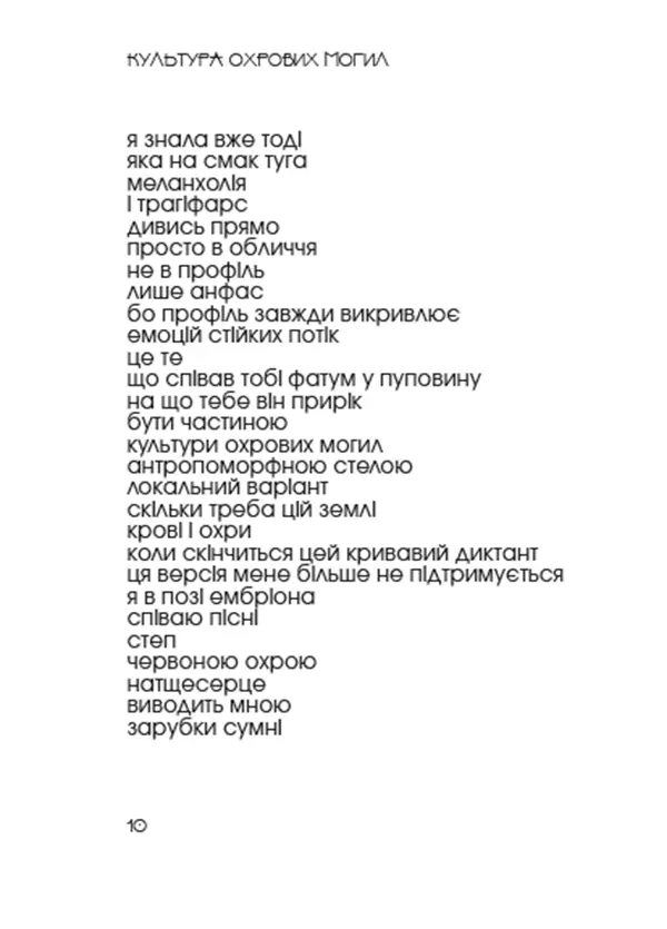 Збірка «Культура охрових могил» – це реабілітація чистим мистецтвом не тільки громади зацікавлених в сучасному українському слові, це особлива мова війни, яку за бажанням може зрозуміти кожен з нас, тих хто продовжує жити на цій землі й всотувати цю культуру.