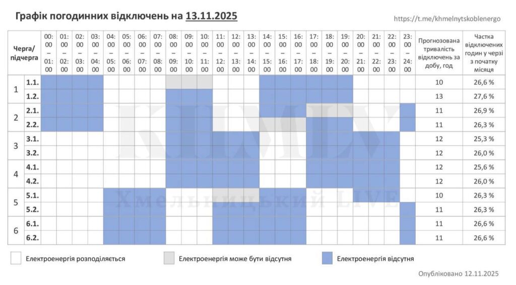 Відключень світла Старокостянтинів 13 листопада