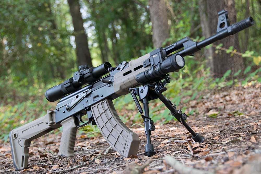 Ергономічна рукоятка, наприклад Magpul MOE AK+ Grip, забезпечує кращий хват. Текстура запобігає ковзанню під час стрільби. У штурмі це прискорює реакцію. Перехід до рейок для аксесуарів.